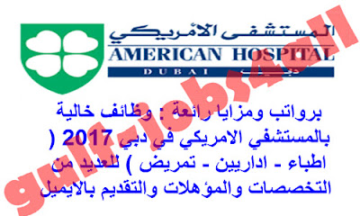 برواتب ومزايا رائعة وظائف خالية بالمستشفي الامريكي في دبي 2017 اطباء اداريين تمريض للعديد من التخصصات والمؤهلات والتقديم بالايميل