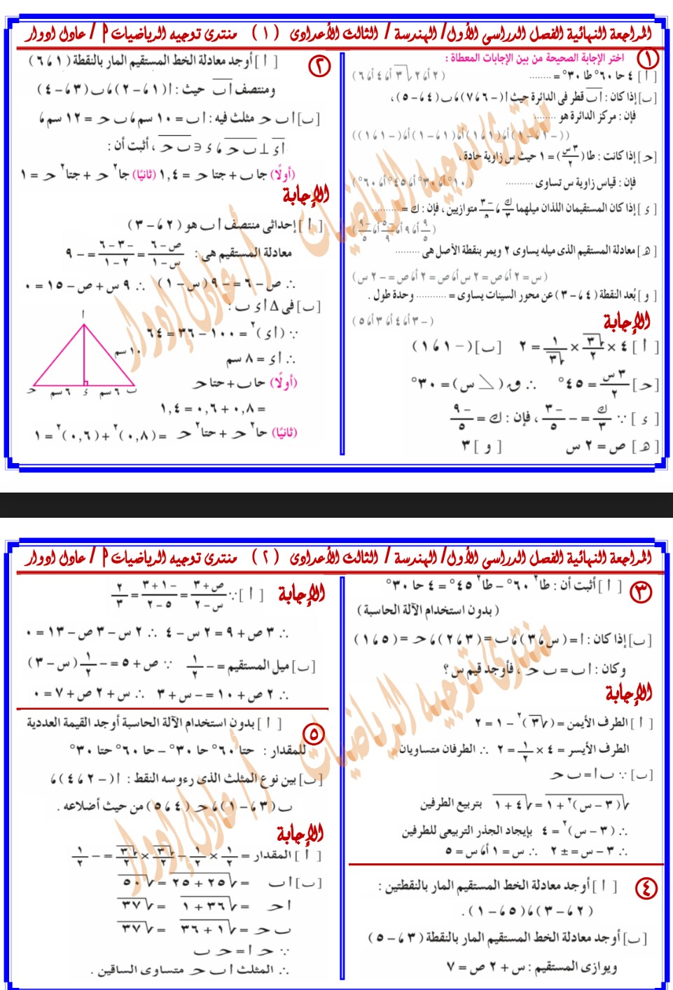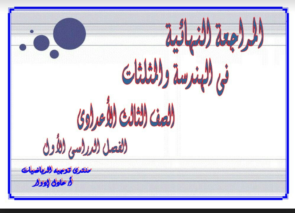 المراجعة النهائية في الهندسه وحساب المثلثات للصف الثالث الاعدادي الترم الاول