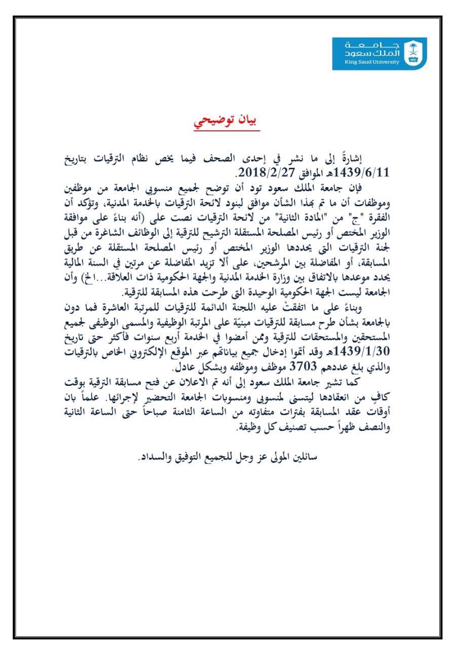 جامعة الملك سعود V Twitter بيان توضيحي حول نظام الترقيات للموظفين والموظفات بـ جامعة الملك سعود