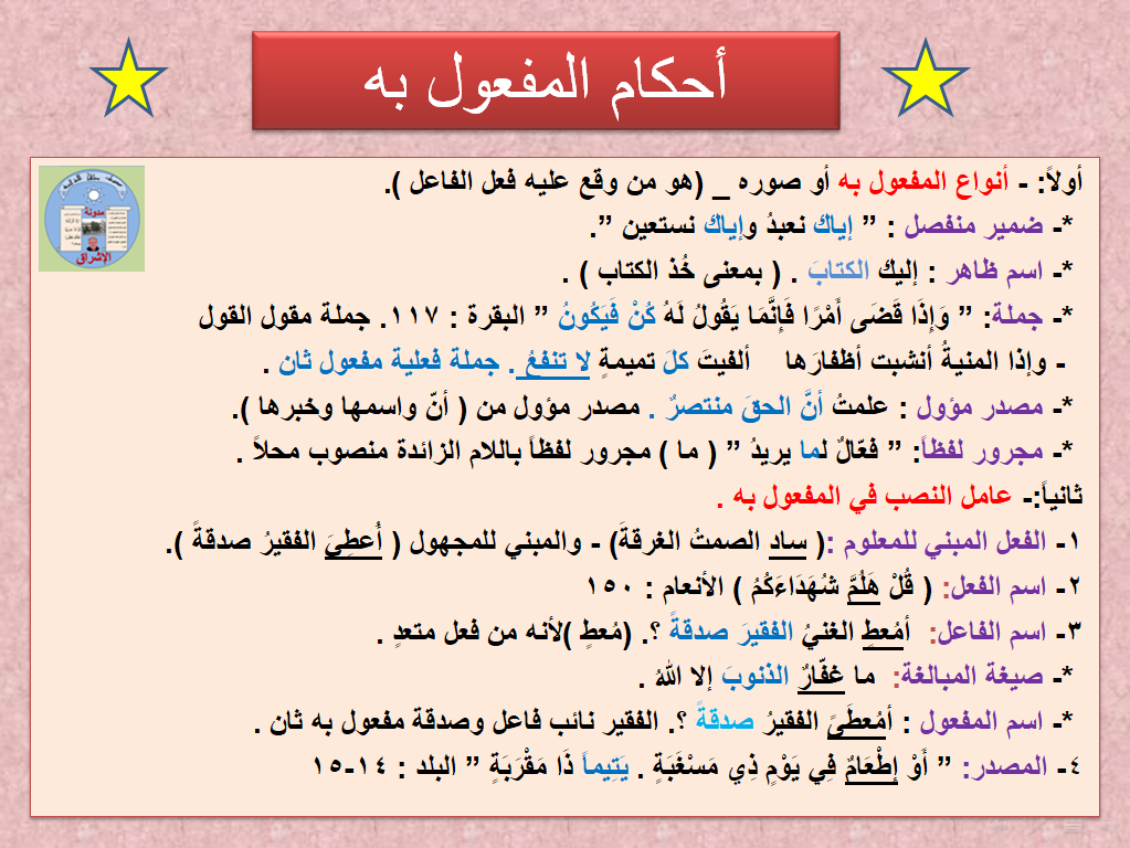 شرح درس المفعول به المقرر على الصف الرابع الابتدائي