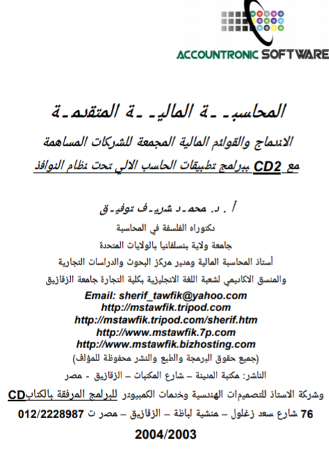 تحميل كتاب المحاسبة المالية المتقدمة الاندماج والقوائم المالية المجمعة لشركات المساهمة مع Cd2 ببرامج تطبيقات الحاسب الألي تحت نظام النوافذ Pdf محمد شريف توفيق مجلتك الإقتصادية
