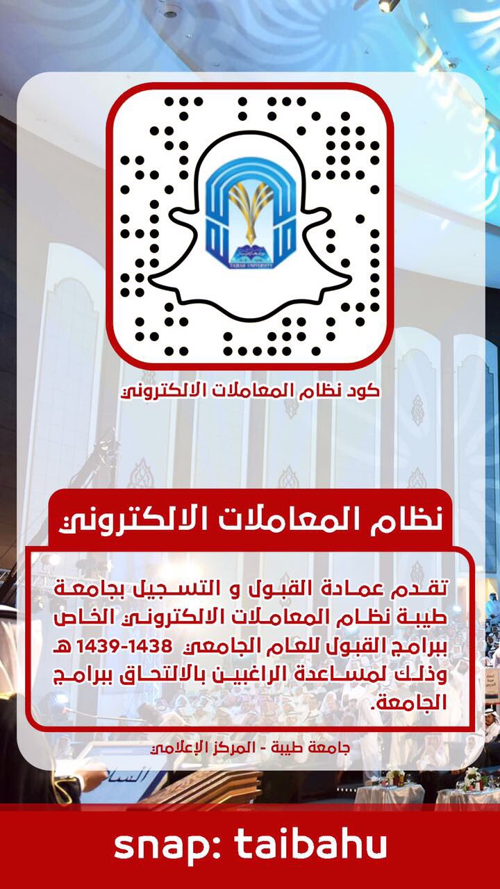 جامعة طيبة Taibah U V Tvittere خدمة الآن بامكانك عزيزي الطالب التقدم لنظام المعاملات الالكترونية في جامعة طيبة عبر مسح الكود في سناب شات نسعد بخدمتكم Https T Co Hsemuoapty