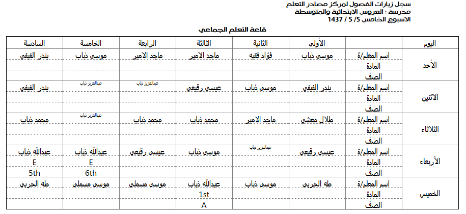 مركز مصادر التعلم بمدرسة العروس جداول اشغال المركز