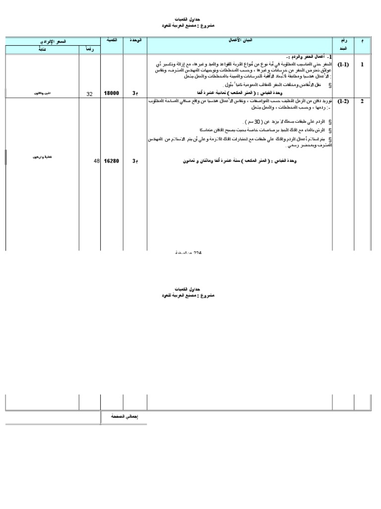 جداول كميات 1الأعمال المعمارية
